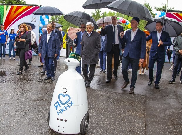 Всех пришедших на праздник встречали аниматоры и ходулисты. Особый восторг у гостей вызвал робот по имени Сабан, который приветствовал визитеров на русском и татарском языках. Эта инновационная разработка стала своеобразным символом 2021 года — Года науки и технологий.