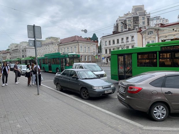 На улице Пушкина в Казани по направлению к ТЦ «Кольцо» встали троллейбусы, сообщили «Реальному времени» очевидцы.