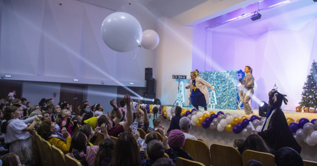 Ребята принимали активное участие в театрализованном шоу, спасали Деда Мороза и Снегурочку из плена Снежной королевы, отгадывали загадки и зажигали вместе со сказочными персонажами. Каждый ребенок получил от нефтеперерабатывающего предприятия новогодние подарки.