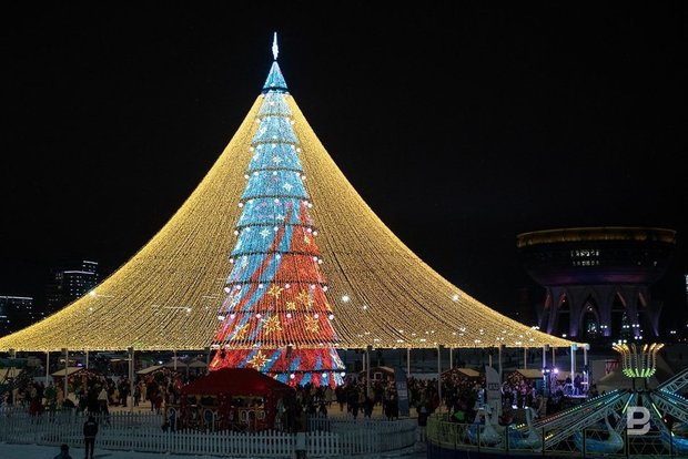 В Казани на главной елке города, расположенной возле «Чаши», зажглись праздничные огоньки 24 декабря.