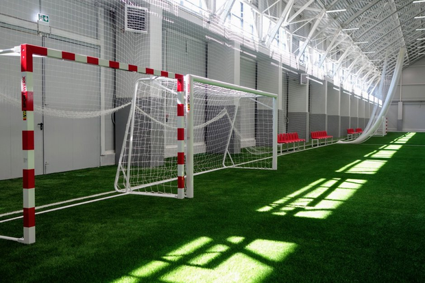 На футбольном поле с искусственным покрытием, где будут проходить практические занятия, требуются шесть ворот с сеткой метр на метр, двое ворот с сеткой 2 х 5 метров, двое ворот с сеткой 2 х 3 м и еще двое ворот с сеткой 2,44 х 7,32 м. Также для уроков предоставят 44 футбольных мяча.