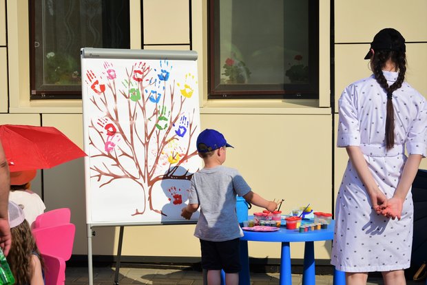 Символом праздника стали «Сердца» и «Детские ладошки», на которых гости могли оставить свои поздравления и пожелания.