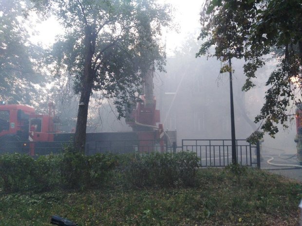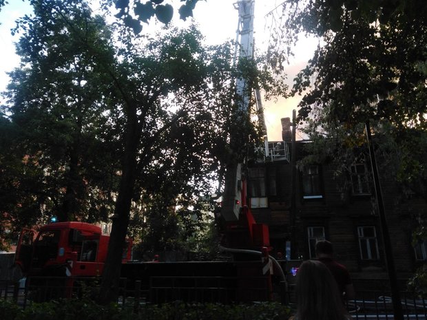 Как сообщает наш корреспондент с места событий, пожарные начали разбирать крышу. Возгорание произошло на втором этаже.