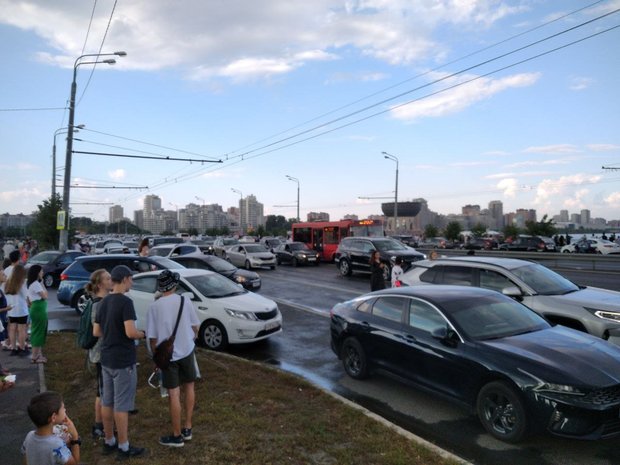 Шоу наблюдают зрители не только у «Чаши», но и напротив нее. На Кремлевской дамбе образовалась пробка.