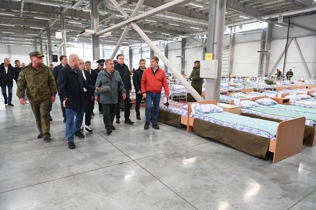 Минниханов посетил пункт сбора мобилизованных, организованный на базе KazanExpo, где размещают прибывающих из районов республики.