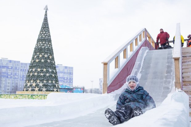 У входа в парк возвышается ледяная горка — излюбленное место детворы. Прихватив с собой ледянки и «ватрушки», мальчишки и девчонки с утра до позднего вечера спешат скорее взобраться на горку — и молниеносно съехать вниз. Неподалеку у маленькой горки все каникулы весело копошатся озорные малыши. Вдоволь накатавшихся ребят ждет большой ледяной лабиринт.