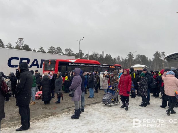 На остановках — толпа, в автобусах — давка: казанцы не могут уехать с Масленицы