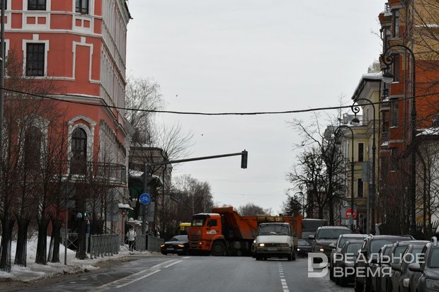 В Казани из-за ДТП с участием КАМАЗа на перекрестке улиц Большой Красной и Жуковского образовалась километровая пробка. Об этом сообщает корреспондент «Реального времени».
