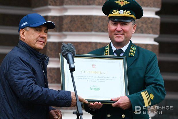 Раис Татарстана Рустам Минниханов вручил сертификат на получение 28 единиц лесопатрульных машин Lada Niva legend для Минлесхоза республики. Мероприятие состоялось на площади перед ГБКЗ им С. Сайдашева в Казани.
