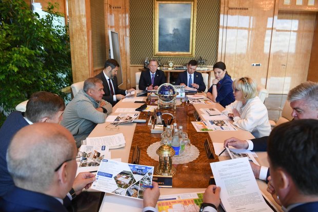 Также во встрече принимали участие министр промышленности и торговли республики Олег Коробченко, министр экономики Татарстана Мидхат Шагиахметов, главы министерств и ведомств республики, а также мэр Набережных Челнов Наиль Магдеев.