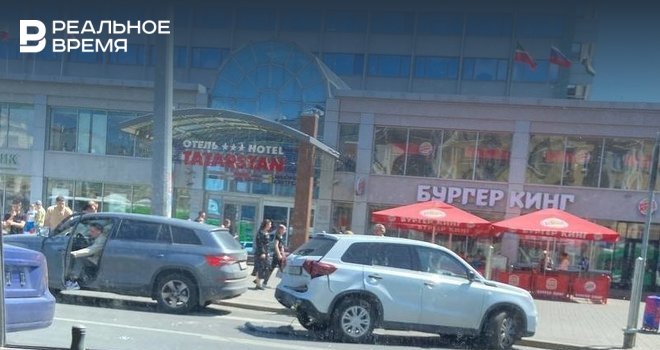 В Казани около ТЦ «Кольцо» образовалась пробка из-за аварии, сообщили «Реальному времени» очевидцы.