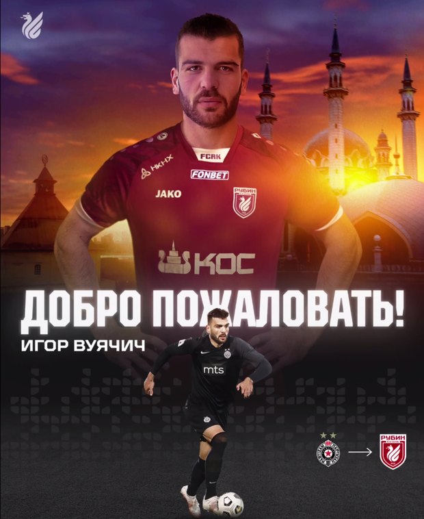 Новым игроком казанского «Рубина» стал бывший защитник ФК «Партизан» из Сербии Игор Вуячич. Он будет выступать под 15-м номером. Контракт подписан на три года, сообщает клубная пресс-служба.