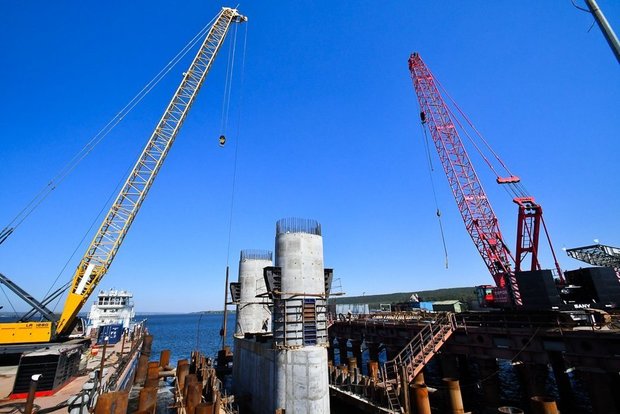 На русловых опорах ведутся работы по устройству буронабивных свай, ростверков и тел опор. На второй опоре мостостроители устраивают временный причал и контрбанкет — насыпной грунт у основания откоса насыпи для увеличения устойчивости ее откоса. После завершения выемки на правобережном подходе к мосту специалисты приступят к сооружению первой опоры.
