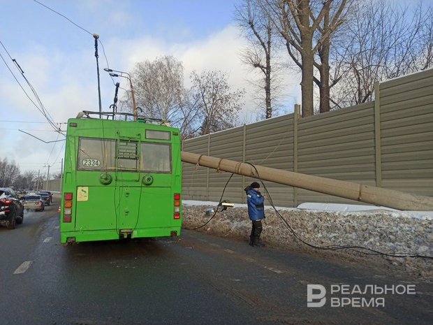 В Казани на Оренбургском тракте столб упал на крышу троллейбуса. Информацию «Реальному времени» подтвердили в пресс-службе МУП «Метроэлектротранс».