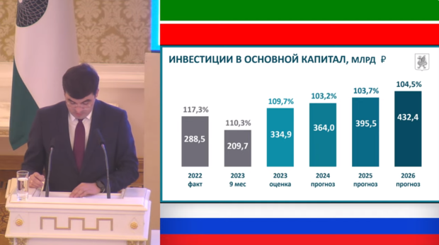По прогнозу, в 2024 году объем инвестиций в основной капитал должен достичь 364 млрд рублей, в 2025-м — 395,5 млрд. В 2026 году он ожидается в размере 432,4 млрд рублей.