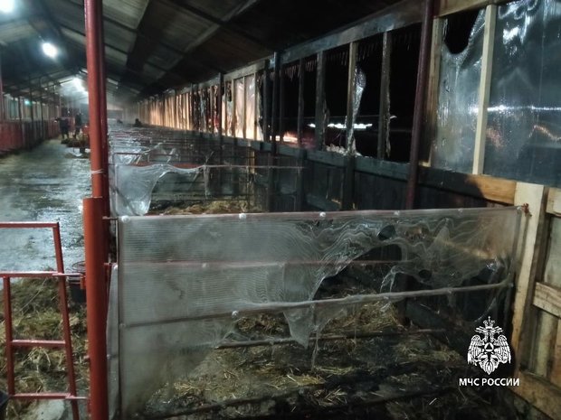На ферме загорелась внутренняя дощатая обшивка одноэтажного здания телятника размером 10х100 м. Ликвидировать горение удалось на площади 100 кв. метров. До прибытия пожарных уже погибли 25 телят. Еще 85 телят удалось спасти.