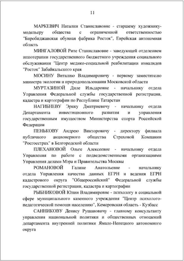 Президент России Владимир Путин объявил благодарность начальнику финансово-экономического отдела Росреестра по Татарстану Диле Муртазиной.