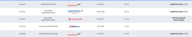 Согласно онлайн-табло казанского аэропорта на вылет задерживаются самолеты, которые следуют в Москву, Санкт-Петербург, Калининград, Минеральные Воды, Киров, Махачкалу, Ташкент и Тюмень.