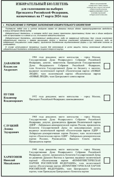 ЦИК России утвердил текст избирательного бюллетеня для голосования на выборах президента