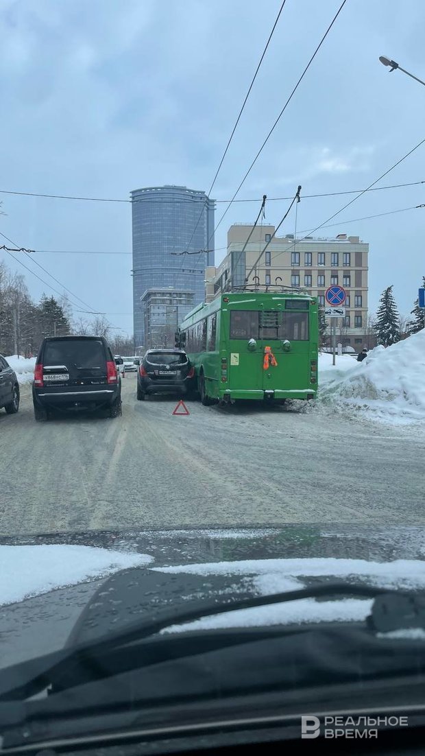 На улице Патриса Лумумбы в Казани автомобиль врезался в троллейбус