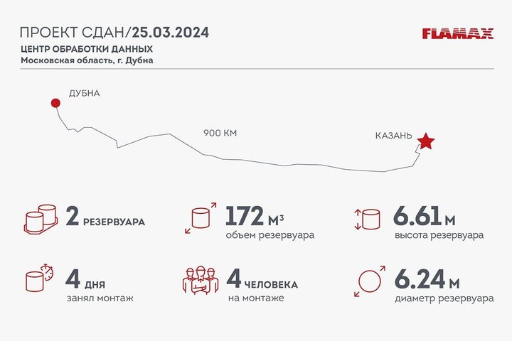 Очередной IT-кейс в копилке компании FLAMAX. На прошлой неделе емкости для хранения воды, произведенные в Татарстане, и насосная станция были установлены в Центре обработки данных в Дубне.