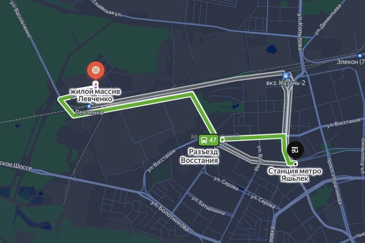 Изменение в схему маршрута вносится по просьбам горожан. Теперь автобус будет следовать по ул. Декабристов через остановки «Метро «Яшьлек» — Энергетический университет (включая ТРК «Тандем» и ДК химиков). Маршрут свяжет улицу Декабристов с улицами Назарбаева, Павлюхина и Оренбургским трактом.