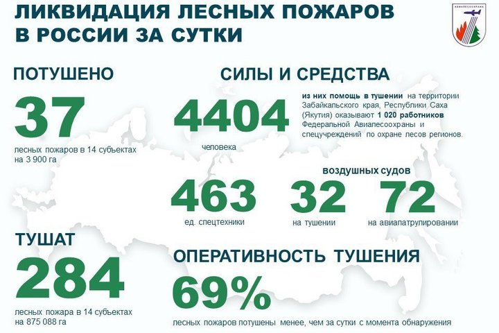 За прошедшие сутки в 14 российских регионах потушено 37 пожаров, однако продолжается тушение еще 284 пожаров в 14 субъектах страны.