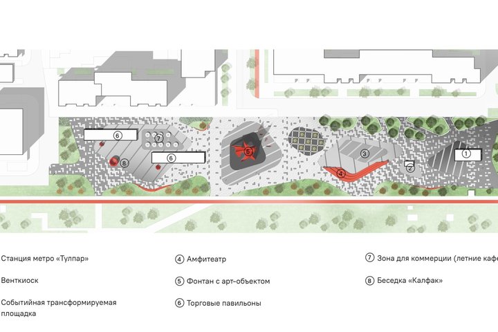 Около будущей станции казанского метро «Тулпар» обустроят общественное пространство. Проект отличается гармоничным сочетанием функциональности, национальных мотивов и современной архитектуры. Конкурс на концепцию проекта выиграл Консорциум TOBE Architects и NTML architects. Об этом сообщается на сайте архитектурного web-портала archi.ru.