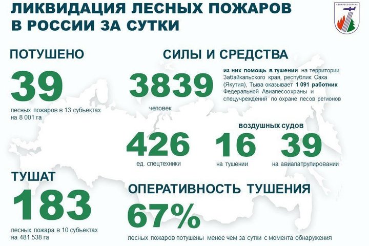 Однако работы по тушению продолжаются: на 20 августа ведется борьба со 183 очагами в 10 субъектах страны, сообщает Федеральная «Авиалесоохрана».