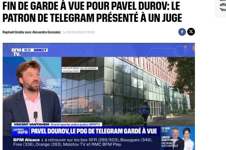 Французские СМИ: Павла Дурова освободили из-под стражи для возможного предъявления обвинения