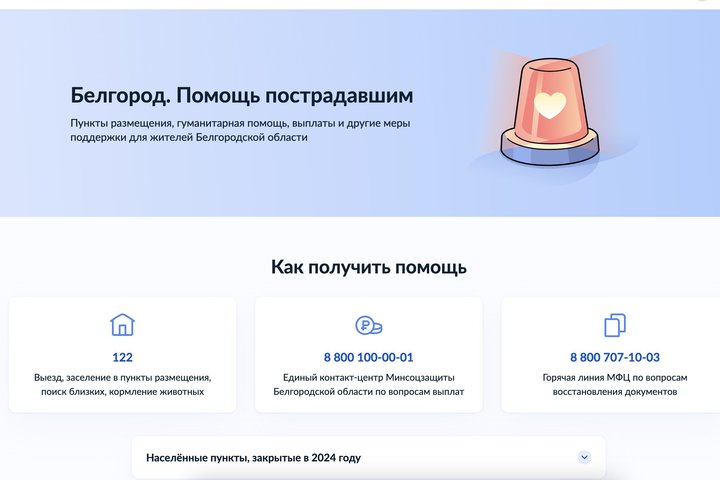 Минцифры России сообщило о создании специальной страницы на портале «Госуслуги», предназначенной для жителей Белгородской области.