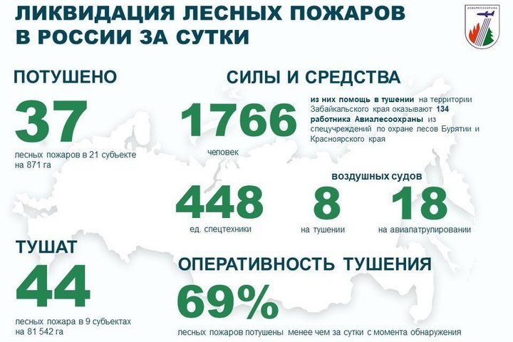 - 8 воздушных судов для тушения, 18 — для мониторинга.