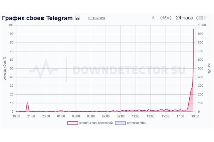 Сервис Downdetector отмечает, что с проблемами в работе столкнулись уже свыше тысячи человек и их количество растет.