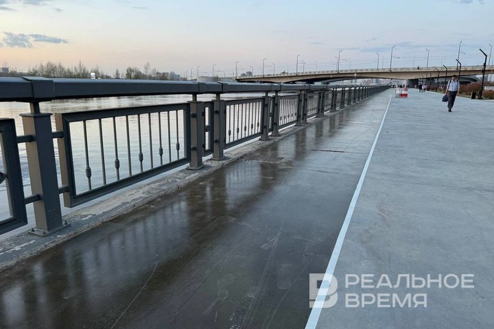 На набережной Казанки вдоль перил начали укладывать новое спортивное покрытие. К настоящему времени оно появилось на участке от Кировской до Кремлевской дамбы, передает корреспондент «Реального времени».
