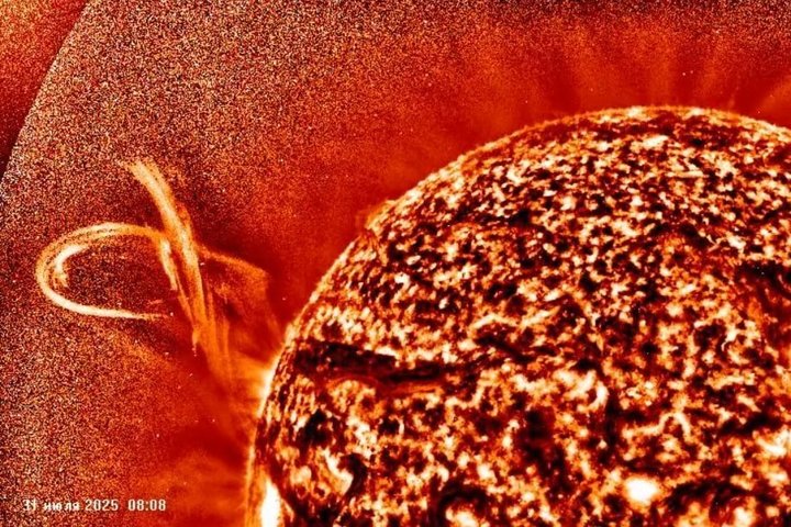 31 июля ученые зафиксировали редкое астрономическое явление. На Солнце произошел двойной выброс гигантских протуберанцев.