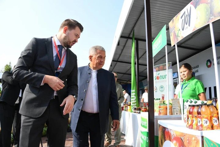 До начала мероприятия татарстанский лидер посетил выставку, где была представлена российская и кыргызская продукция.