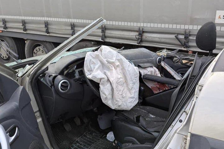 По предварительным данным, водитель автомобиля Lada Largus, двигаясь в попутном направлении, не выбрал безопасную скорость и совершил столкновение с автомобилем КАМАЗ.
