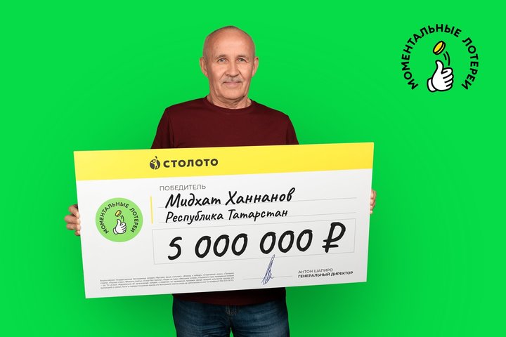 Житель города Альметьевска Мидхат Ханнанов — счастливый дедушка четырех внуков, а еще — лотерейный миллионер. В 2024 году мужчина купил в фирменной точке продаж «Столото» билет моментальной лотереи с дизайном «Рапидо Люкс» и выиграл 5 000 000 рублей.