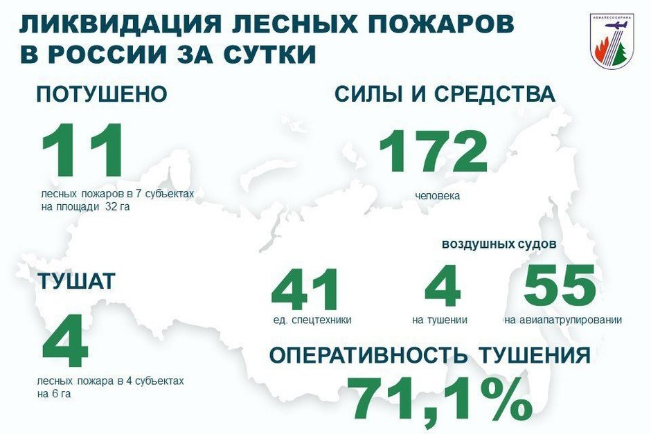 В России за прошедшие сутки ликвидировано 11 лесных пожаров в семи регионах. Об этом сообщила Федеральная авиалесоохрана в своем телеграм-канале.