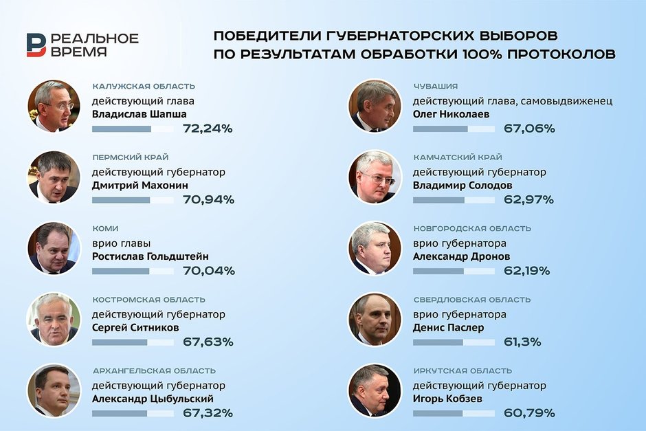 Вчера, 14 сентября, в России завершился Единый день голосования. Он проходил с 12 по 14 сентября в 81 субъекте страны. В 20 из них состоялись прямые выборы губернаторов, в одном — выборы главы региона через парламент, еще в 11 голосовали за депутатов законодательных собраний. О результатах — в материале «Реального времени».