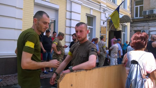 Лыхолит, который известен под прозвищем Батя, находится в здании райсуда. Вокруг него также собралось немало активистов и членов батальона «Айдар».