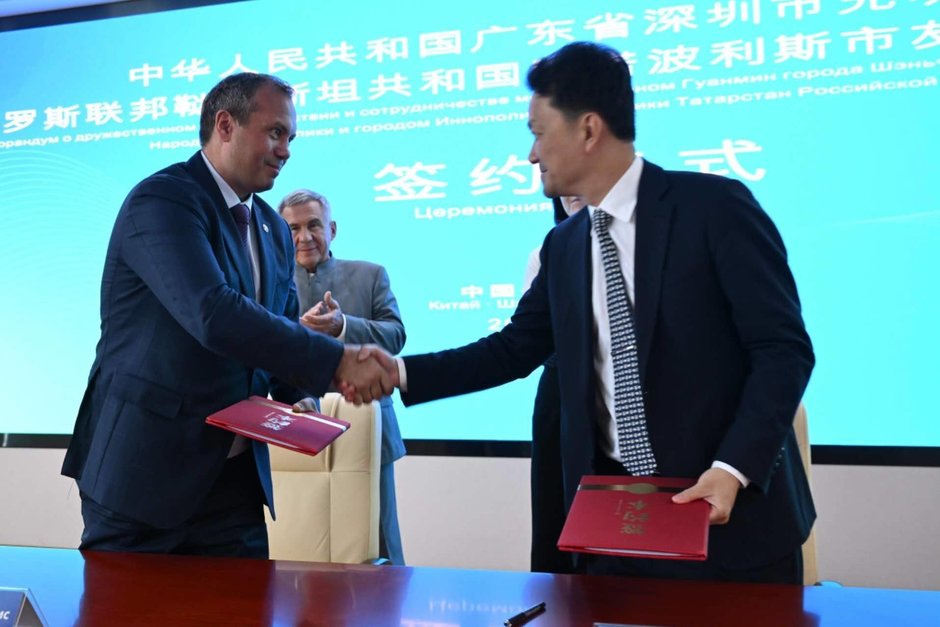 Документ подписали мэр Иннополиса Дмитрий Вандюков и мэр района Гуанмин Цю Хаохан. Соглашение предусматривает развитие сотрудничества в ключевых областях высоких технологий, которые представляют взаимный интерес для обеих сторон.