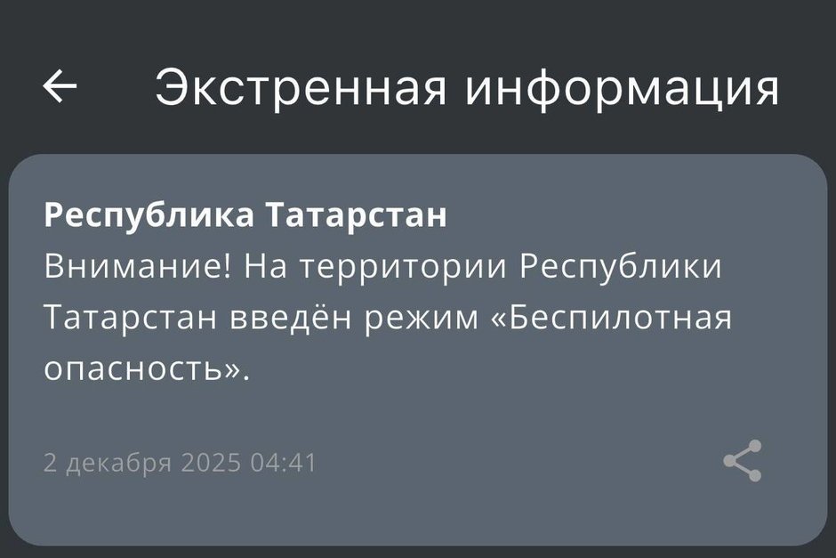 Вчера в Татарстане почти пять часов действовал режим «Беспилотная опасность», с 02.13 до 07.07 мск.