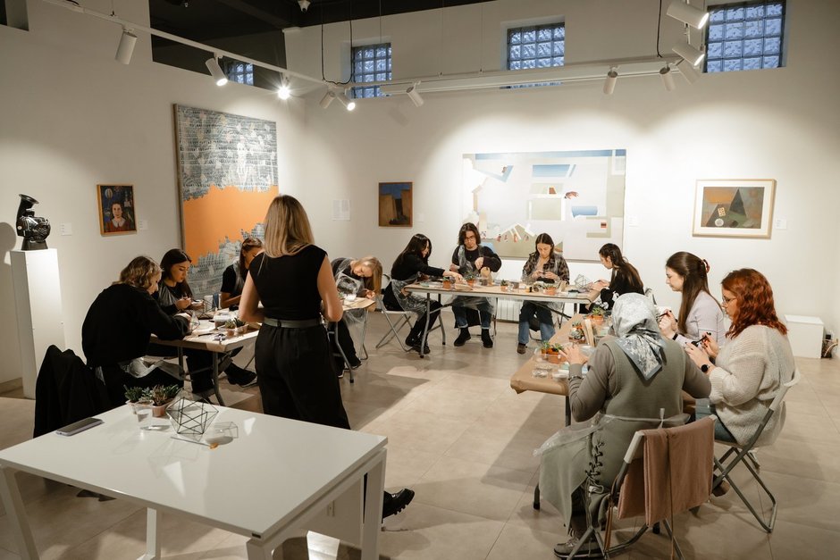Мастер-класс прошел в галерее «БИЗОN». Здесь проходит выставка «Опередившие время». Экспозиция объединила работы ведущих художников неофициального советского искусства 1950–1980-х годов — нонконформистов, работавших в трех крупных культурных центрах страны: Москве, Ленинграде и Казани.