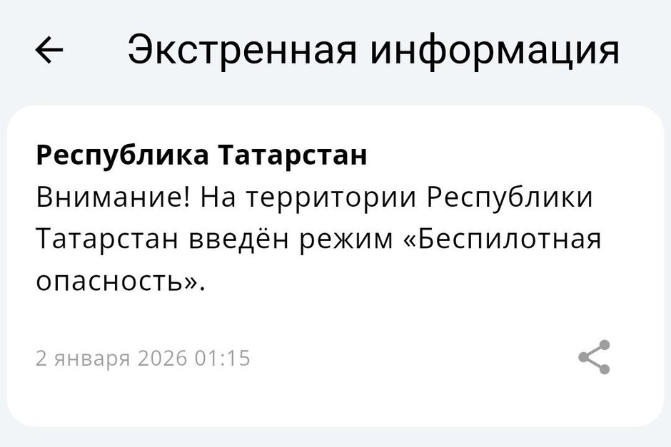 Ранее аналогичный режим был введен ночью 31 декабря, затем 1 января утром. Накануне над территорией Татарстана было сбито пять украинских беспилотников самолетного типа.