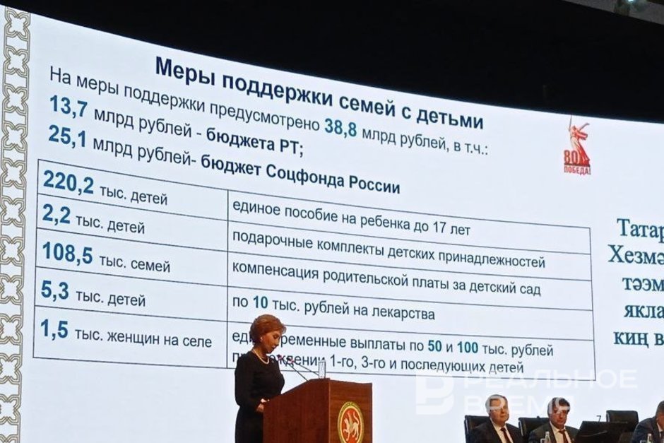 Общий объем поддержки семей с детьми от Татарстана в 2025 году составляет 38,8 млрд рублей, из которых 13,7 млрд рублей выделили из бюджета региона, а 25,1 млрд рублей поступило из Соцфонда России. Об этом сообщила на итоговой коллегии Министерства труда, занятости и соцзащиты республики глава ведомства Эльмира Зарипова.