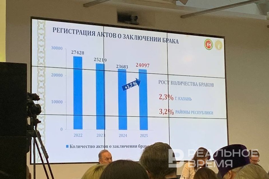 Начальник Управления ЗАГС кабмина Татарстана Эльвира Ахметова представила итоги работы ведомства за 2025 год. По ее данным, в регионе впервые за последние три года наблюдается увеличение количества зарегистрированных браков.