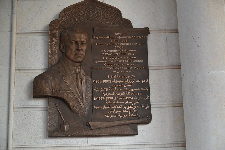 Раис Татарстана Рустам Минниханов принял участие в церемонии открытия памятной доски Полномочному представителю СССР в Саудовской Аравии Кариму Хакимову. Мемориальный знак размещен на здании Постоянного представительства России при Организации исламского сотрудничества (ОИС).