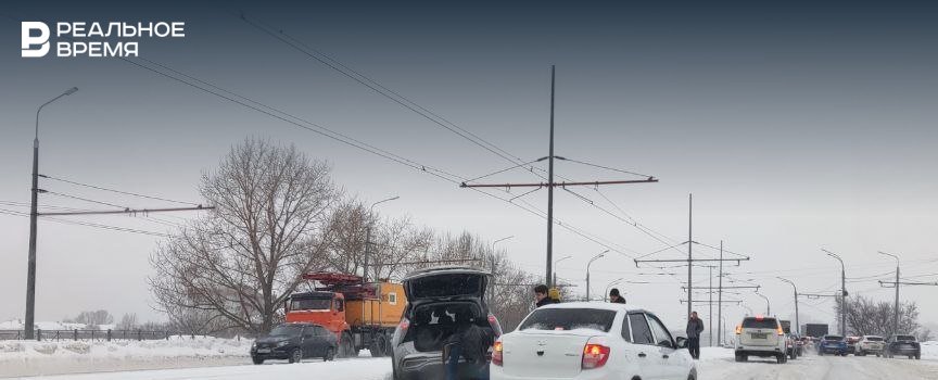В Казани на мосту по ул. Гвардейской случилось ДТП. Иномарка вылетела на трамвайные пути из-за чего остановилось движение трамвая, сообщает корреспондент «Реального времени».
