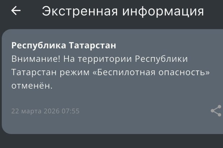 В Татарстане отменили режим «Беспилотная опасность» спустя 5,5 часов. Об этом сообщили в МЧС.